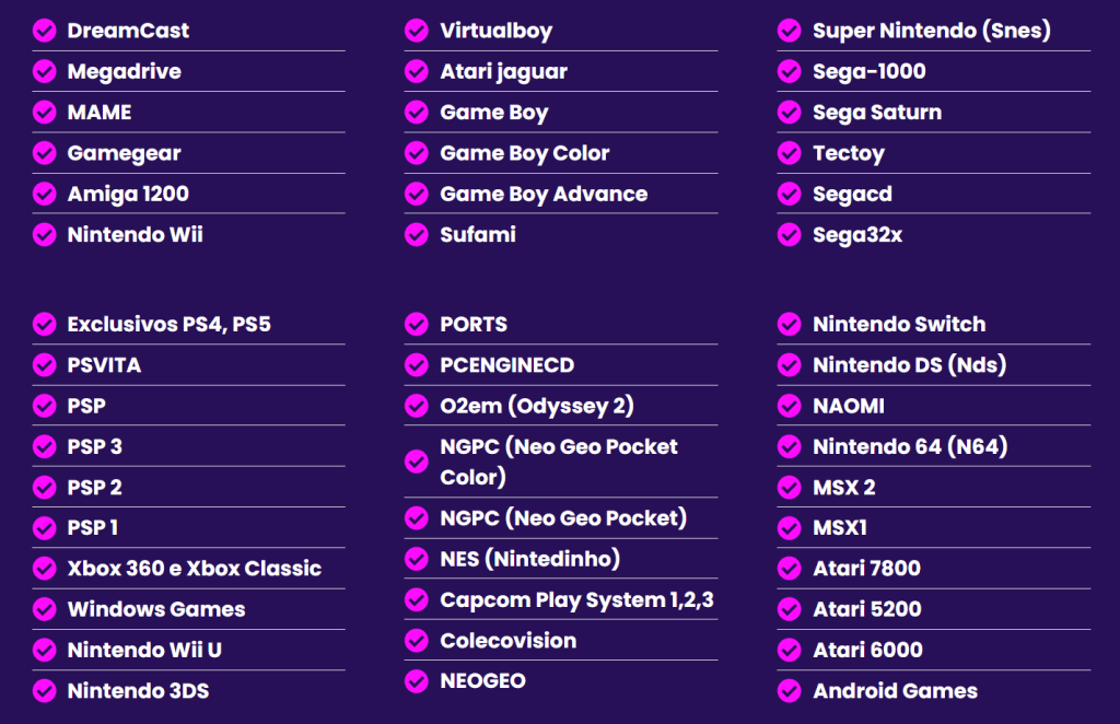 Você vai jogar novamente os maiores clássicos, com direito a mais de 30 mil jogos, dos melhores consoles que já existiu, e vivenciar de novo aqueles divertidos momentos da sua infância, com um dispositivo que você já tem em casa!